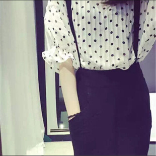 • 歐洲站春夏新品雪紡衫短袖波點兩件套裝 修身背帶少女時尚套裙潮 /
