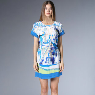 2015夏裝新款女裝批發(fā)工廠貨源真絲藍色印花紅色印花連連衣裙 /