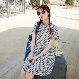 2015夏季新款短袖連衣裙 韓版印花連衣裙 外貿(mào)原單連衣裙 夏季 /