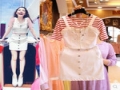 歐洲站套裝2015夏季新款日系VIVI同款條紋T恤背帶包臀裙三件套女 /