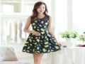 2015夏裝新款時尚氣質(zhì)3D印花芒果花無袖收腰顯瘦連衣裙 /