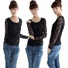 【麗涵爾】2013女裝新品蕾絲莫代爾性感蕾絲衫黑色蕾絲打底衫批發(fā) /