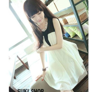 2015春夏裝新款淑女風黑白拼色背心裙性感公主無袖雪紡連衣裙子 /