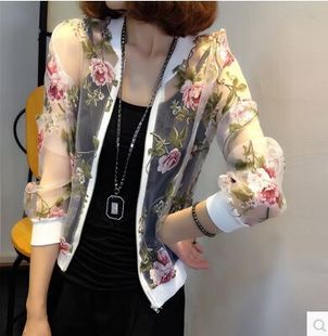 【包郵】【Korea 韓都風情】修身短款上衣印花歐根紗開衫防曬衣 /