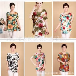 中老年女裝夏裝 大碼t恤短袖女裝中老年冰絲短袖媽媽服裝地攤批發(fā) /