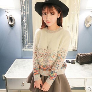 • 2015春裝新款圓領長袖套頭漸變長毛馬海毛毛衣女韓版潮 /