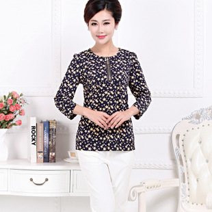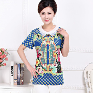 2015年新款中老年女夏裝 時(shí)尚娃娃領(lǐng)民族風(fēng)印花 T恤媽媽裝夏批發(fā) /