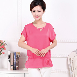 2015年夏裝新款中老年女式T恤 簡約大方 仿真絲中老年女裝夏批發(fā) /