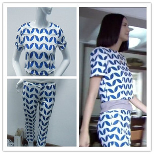 2014新款夏裝新閨蜜時(shí)代張歆藝韓文靜同款 童瑤 蔣欣印花套裝襯衫 /