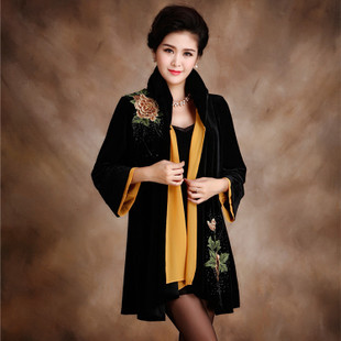 秋冬氣質媽媽裝 長袖金絲絨修身中老年女裝外套 刺繡中老年女裝 /