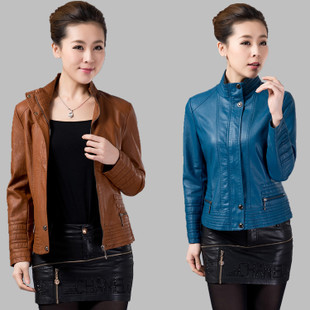 2015春季短款皮衣女外套 pu皮水洗皮衣外套 官網中老年大碼女裝 /