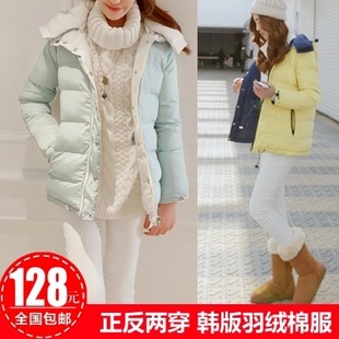 2014韓國代購正反兩穿羽絨棉服 加厚棉衣外套韓版帶帽女棉襖大衣 /