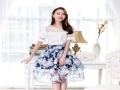 2015夏新款韓版女裝氣質(zhì)圓領(lǐng)短袖蕾絲上衣+印花半身裙兩件套套裝 /