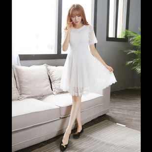 2015韓版女裝夏裝新款大擺短袖蕾絲修身氣質(zhì)連衣裙 /