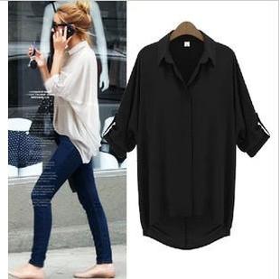 2013新款 歐美時尚風格翻領寬松雪紡長袖襯衫百搭女上衣 /