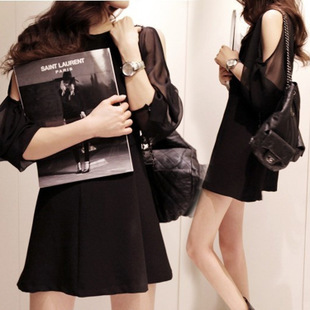 2015春新韓國代購SZ名媛淑女氣質(zhì)修身顯瘦泡泡袖露肩連衣裙短裙女 /