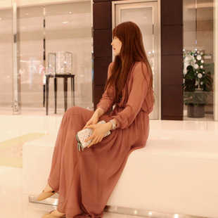 韓國代購春夏裝新款長袖雪紡連衣裙兩件套女裝波西米亞沙灘長裙女 /