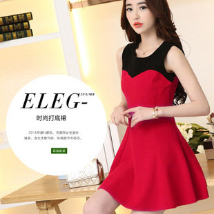 2015春裝韓版雪紡無袖顯瘦立體百搭連衣裙 /