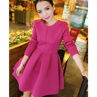 2014韓版新款秋冬裝品牌時尚長袖連衣裙蓬蓬裙收腰百紂連衣裙 /