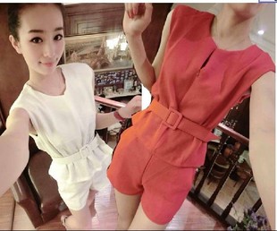 韓版女人精品服裝免費(fèi)代理加盟 純色無袖雪紡衫+短褲套裝 配腰帶 /