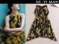 2015夏季女裝新款 歐美風(fēng)優(yōu)雅露肩印花不規(guī)則擺修身連衣裙H /