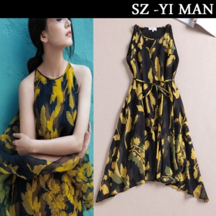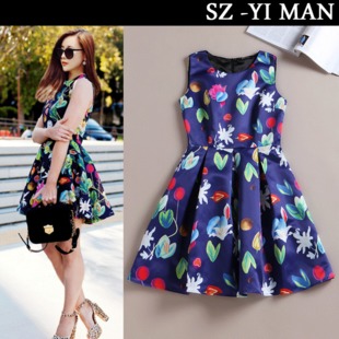 2015夏季女裝新款 歐洲站時(shí)尚印花修身背心裙蓬蓬連衣裙H1041 /