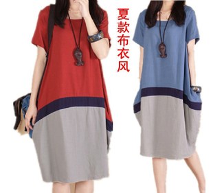 現(xiàn)貨2015年夏布衣女裝大碼韓版撞色拼接棉麻夏季連衣裙夏 /