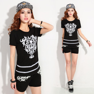 2015夏裝新款繡花休閑運(yùn)動(dòng) 套裝女時(shí)尚短袖短褲薄歐洲站T恤學(xué)潮 /