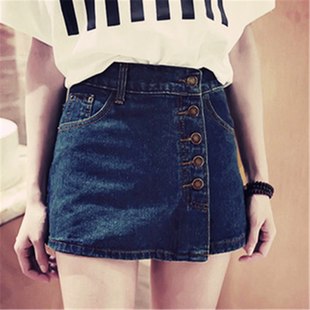 2015夏季新款韓版修身高腰牛仔半身裙褲單排扣包臀短裙女式褲裙 /