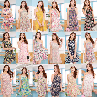 外貿原單雜款碎花連衣裙女 夏季新款韓版無袖沙灘短裙 廠家特批 /