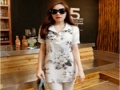 2015夏季新款襯衫女 短袖女裝修身套頭印花中長款打底衫襯衣棉麻 /