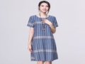 2015夏裝新款文藝原創(chuàng)女裝圓領(lǐng)大碼寬松顯瘦條紋棉麻連衣裙長裙 /