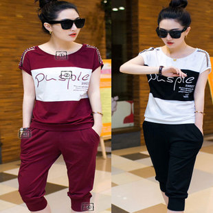 夏季運(yùn)動套裝新款韓國短袖時(shí)尚七分褲大碼胖MM休閑服女士潮 /