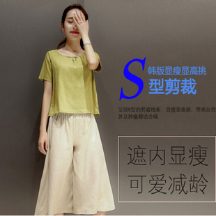 2015夏新款森女顯瘦短袖T恤衫闊裙褲 休閑七分裙褲套裝 /