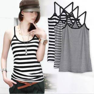2015超值跑量 女裝吊帶夏季y字條紋背心百搭修身吊帶 背心批發(fā) /