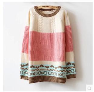 簡介: 建議零售價 ¥68.00 產(chǎn)地 嘉興洪合 主圖來源 實拍有模特 貨源類別 現(xiàn)貨 是否庫存 否 毛種類 混紡類 紗線種類 羊毛/腈綸 含毛量 70%以上 毛線粗細 普通毛線 毛衫工藝 針織 風格 外貿(mào)原單韓版 圖案 拼色條紋 款式 套頭 組合形式 單件套 版型 寬松型 衣長 普通款(50cm<衣長≤65cm) 領型 圓領 袖型 常規(guī)袖 袖長 長袖 厚薄 厚 流行元素 拼色條紋 工藝 電腦橫機編織 上市年份/季節(jié) 2014秋季 顏色 粉色,深藍,橘紅 尺碼 均碼