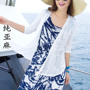 新款韓版亞麻針織衫外套夏季五分袖薄款空調(diào)衫麻棉開衫寬松防曬衣 /