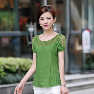 2014新款夏裝大碼女裝/韓版修身棉麻白短袖女式襯衫/亞麻女士上衣 /