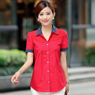大碼中老年女裝夏裝中年夏季新品媽媽夏裝襯衫短袖女上衣夏T恤薄 /