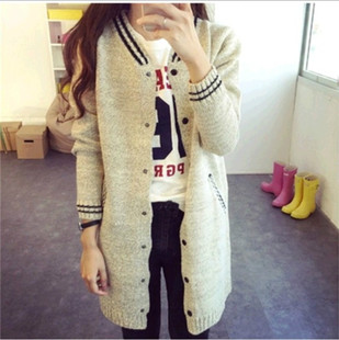 2015新款韓國學院風外套女中長款針織衫薄開衫 女春秋毛衣棒球服 /