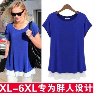 加肥加大碼女裝胖mm夏裝新款2014歐美胖妹妹夏季短袖T恤 /