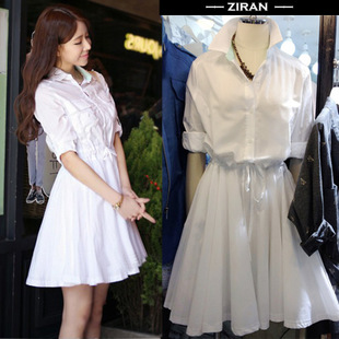 2015夏裝復(fù)古襯衣女裝 爆款優(yōu)雅品牌純棉大擺裙 連衣裙 /
