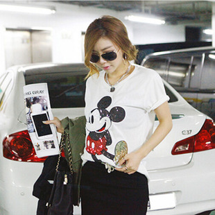2015春夏裝新款純棉潮韓國亮片米奇顯瘦寬松短袖T恤韓版女上衣 /
