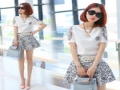 2015新款韓版時尚印花修身顯瘦小香風(fēng)半身連衣裙女兩件套 /
