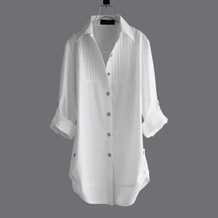 2015女裝春夏秋季中長款長袖白色純棉大碼襯衣女襯衫 /