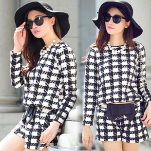 2014秋冬最新款韓版千鳥格子上衣+短褲兩件套 /