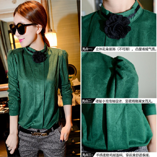 2014韓版 潮流氣質(zhì) 修身純色 鹿皮絨打底衫長袖t恤 /