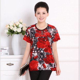 爆款中老年冰絲女裝 夏裝百搭圓領(lǐng)媽媽裝短袖t恤地?cái)偀豳u服裝批發(fā) /