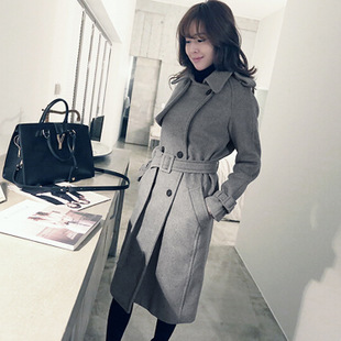 2014秋冬季新款風(fēng)衣 純色歐美大牌氣質(zhì)時(shí)尚女士呢料大衣外套 淘 /