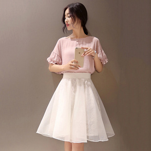 ANLANNA2015夏新款女蕾絲歐根紗半身裙韓官網(wǎng)雪紡衫上衣兩件套裝 /